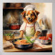 Watercolor Volpino Italiano Dog Cooking Pasta Poster