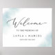 This watercolor wash blue wedding welcome poster is perfect for a modern wedding. The simple and classic design features a splash of pastel light blue water colour with minimalist elegant style. Customise the sign with the name of the bride and groom, and the date of the wedding.