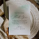 This watercolor wash green thank you reception card is perfect for a modern wedding. The simple and classic design features a splash of pastel sage green water colour with minimalist elegant style. Place these cards at the table setting for each of your guests at your wedding reception. Personalise the card with your names and a special thank you message.