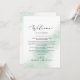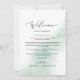These watercolor wash green wedding welcome letter & itinerary cards are perfect for a modern wedding. The simple and classic design features a splash of pastel sage green water colour with minimalist elegant style. The front of the card features a welcome letter and the back of the card features the wedding itinerary. These notes are perfect for destination weddings and hotel guest welcome bags.