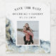 This save the date hand wine label features watercolor brush stroke in deep navy blue colours with gold accents imitating waves on the beach which makes it a perfect choice for a summer or beach wedding. It is minimalistic and elegant in layout and font choices, also very easy to customise. Customise with your own photo or delete the photo and leave only script on the front. Other items from this collection complement it very well so do check out the whole collection