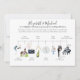 This modern wedding invitation has dual purpose! It contains all the information required for a formal invitation along with your wedding program which can be used to loosley advise guests of how the day will be planned out. It has timeline, wedding program template fields for preparations, ceremony, photos, cocktail hour or toast, meal, cutting of the cake, first dance and music and dancing, evening reception. Each timeline event is accompanied by an attractive watercolor illustrated icon. On the front you can add couples names, the ceremony and reception details and on the reverse you can add rsvp and any other details as desired including, gift registry, direction, hotel and transport information and more. For matching items and custom edits contact Designer LeahG