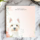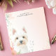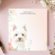 This personalised notepad features an adorable watercolor Westie portrait surrounded by soft pastel florals, creating a charming and elegant design. Perfect for dog lovers, pet owners, and West Highland White Terrier fans. Customise the text at the top for a unique touch, making it ideal for journalling, note-taking, or gifting.