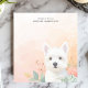 This personalised notepad features an adorable watercolor Westie surrounded by soft pastel florals, creating a charming and elegant design. Perfect for dog lovers, pet owners, and West Highland White Terrier fans. Customise the text at the top for a unique touch, making it ideal for journalling, note-taking, or gifting.