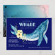 Elegant, ocean themed birthday party invitations featuring a painted watercolor whale adorned with yellow flowers and green leaves on navy blue background. Personalise the cute whale birthday party invitations by adding the birthday girl or boy's name, age, and party details.