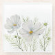 Watercolor White Cosmos Flowers Botanical Painting Glass Coaster