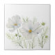 Watercolor White Cosmos Flowers Botanical Painting Tile