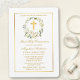 Watercolor White Floral Gold Cross Communion Invitation