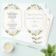 Elegant card design featuring watercolour delicate white flowers and green leaves, a faux gold frame, on a white background. On the back white flowers bouquet. Use Personalise tool to add your info, change fonts, font's colours. For matching items, please, visit my Delicate White Flowers Collection.