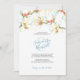 This elegant wedding invitation features your names set in a stylish handwritten script typography with event details in a classic charcoal grey serif font on a crisp white background with a top boarder of my original watercolor white magnolia florals. The invite card reverses to a complimentary turquoise colour that can be customised to suit your desired wedding theme. A modern yet boho choice for summer weddings in Southern climates or Florida. To see the entire suite by Victoria Grigaliunas visit www.zazzle.com/dotellabelle
