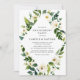 Watercolor White Flowers Frame Engagement Party Invitation | Invite family and friends with this customisable floral invitation. It features white flowers and foliage accents. This floral frame invitation is perfect for winter and spring engagement parties. The texts on this botanical invitation are fully customisable for any event. Matching items are available.