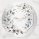 Watercolor White Flowers Golden Frame Silver Teal Confetti