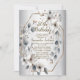 Watercolor White Flowers Golden Frame Silver Teal Invitation