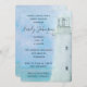 Watercolor white lighthouse and seagulls with ocean background for bridal shower.
