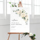 Welcome guests to your event with this customisable baby shower welcome sign. It features watercolour floral bouquet of white roses and hydrangeas with greenery accents. Personalise by adding your event details. This floral welcome sign si perfect for spring and winter baby showers. Matching items are available.