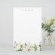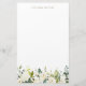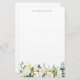 White floral custom stationery featuring watercolor illustration of white flowers and white hydrangeas with greenery accent. This botanical stationery will be perfect as a personalise gift. Personalise by adding a name or short phrase.
