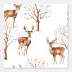 Watercolor Wild Forest and Deer Pattern Wallpaper