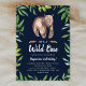 A stylish, watercolor design, featuring forest leaves and a sweet little bear. Celebrate your little one's first birthday with a "wild one" party!