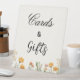 This ivory and watercolor floral pattern. Personalise the cards and gifts sign using your information, then select "Click to customise further" to change the text style and font.