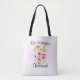 This beautiful tote is perfect as a wedding swag bag for thanking your bridesmaids. It features a lovely hand painted bouquet of wildflowers, pansies, or violets on a pale pink watercolor background. The caption across the top reads: Bridesmaid, and there is space for her name below. Perfect for a spring or summer ceremony.
