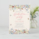 This is a delicate and summery graduation party invitation. The design features a colourful and bohemian field of wildflower florals in pretty shades of blue, terracotta, pink, purple and yellow. The butterflies and bees add the finishing botanical elegant touch. There is also a photo on the back with additional personalisation details.