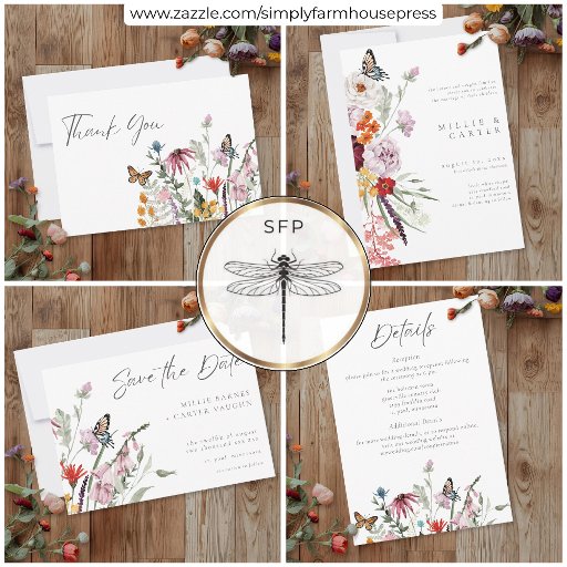 Watercolor Wildflower Butterfly Modern WeddingDesigned by Kathe Santillo
