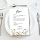 This Watercolor Wildflowers Elegant Dusty Blue Wedding Menu features beautiful blue and yellow wildflowers, menu options, optional text on the back, and modern typography. Your wedding reception guests will love having a choice of meal options at your wedding.