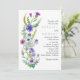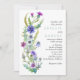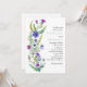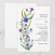 This wedding invitation is absolutely stunning! It's perfect for a spring or summer wedding and has a beautiful floral arrangement on the left side. The flowers are painted in watercolor and come in shades of blue and purple with bluish green leaves. On the back of the invitation, you'll find the couple's initials in a round frame that's decorated with wild flowers. It's such a lovely touch! This invitation is sure to impress your guests and set the tone for your special day. You'll love the way it looks and your guests will be thrilled to receive such a beautiful invitation.