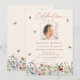 This is an elegant and whimsical modern funeral invitation card to celebrate the life of your loved one. The design features a beautiful calligraphy font and lovely wildflowers in pastel pink, purple, blue, yellows and rust reds or terracotta and also delicate fluttering butterflies. This celebration of life invitation can easily be personalised with your own photo to create a special tribute for your loved one's funeral, memorial or celebration of life using the template provided.