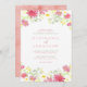 Our Watercolor Wildflower Wedding Invitation surrounds your wedding day details with clusters of pink watercolor wildflowers, white daisies and delicate green foliage. On the reverse of these wedding invitations there is a contrasting pink watercolor wash.