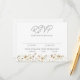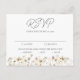 Modern, boho RSVP card features a horizontal design with delicate wildflowers in soft shades of blush pink, yellow, purple, ivory, and green. Personalise with your meal choices and RSVP deadline with the easy to edit template featuring a romantic script font and modern serif font.