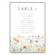 Watercolor Wildflower Wedding Table Number