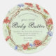 Round watercolor summer floral wreath label, featuring colourful rustic flowers such as poppies and cornflowers. Foliage such as grass and bare twigs. Suitable label for the etsy business owner, sticker that can be used for body butter, scrub, bath bomb, scented candles or other.