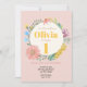 Celebrate your little girl’s first birthday with this beautiful watercolor wildflower wreath on pink with a sunny yellow retro font.