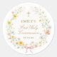 Watercolor Wildflowers Gold Cross First Communion Classic Round Sticker
