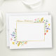 Modern Elegant Watercolor Wildflowers Floral Personalised Note Card includes delicate yellow, pink, peach, dusty blue, sage green, purple, red and orange wild flowers, poppies, eucalyptus leaves and other beautiful botanical greenery on a gold frame.