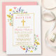 Watercolor Wildflowers Gold Pink Baptism Invitation
