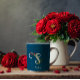 Watercolor wildflowers initial blue coffee mug. Monogram on two sides. Perfect for gift.