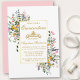 Modern Elegant Watercolor Wildflower Quinceanera Invitation includes delicate yellow, pink, purple, dusty blue and white wild flowers, eucalyptus leaves, sage green leaves and other botanical greenery on a gold frame. Gold Tiara Crown. Pink Blush Back.