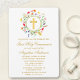 Watercolor Wildflowers Wreath First Communion Gold Invitation