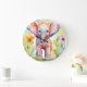 Watercolor Wildlife Elephant Large Clock