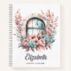 Elegant Stylish Colourful boho floral Feminine and whimsical customisable notebook featuring Watercolor Painting of Open Window with Pink blush Flowers and Succulents. This watercolor bohemian custom notebook will be a perfect feminine accent for your office or great gift idea for friend .