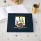 A beautiful and realistic watercolor design featuring wine bottles, cheese and grapes resting on a wooden board framed by a white square inlay with a faux gold edge. This elegant ai design is ideal for a country; boho; Tuscan; Italian; vineyard, winery; wine farm or informal intimate wedding and is suited to restaurants, diners and upmarket eateries too.