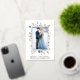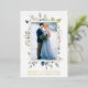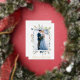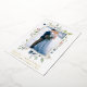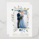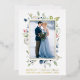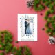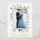Elegant Watercolor Winter Greenery and Blue Floral Merry Christmas Wedding Photo Newlywed Holiday Card includes winter botanical greenery leaves, blue berries, blue flowers, cotton and red berries. Gold Foil Frame and Text.