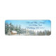 Add a holiday flair to your Christmas mail with this watercolor winter design. A snow-covered cabin is nestled in the forest among the trees, with more snowflakes falling.