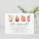 Modern birthday party invitations featuring watercolor illustrations of winter/holiday cocktails in shades of red, green, orange, and brown. The phrase "Let's Celebrate!" is displayed in a handwritten script with your party details shown below. The adult birthday invitations are perfect for winter and Christmas/holiday birthday parties!