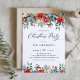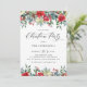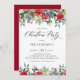 Invite guests to your event with this customisable Christmas party invitation. It features watercolor garland of red poinsettia, roses, holly, pincones, and other botanical accents. Personalise by adding your details. This floral Christmas party invitation is available in a variety of cardstocks.