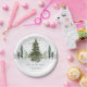 Watercolor Winter Forest Blue Baby Shower Paper Plate