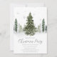 This elegant Christmas party invitation is a wonderful choice for your event. Design features green watercolor forest tree illustrations and snowflakes. The modern calligraphy script font is paired with a traditional serif for a classic look. Use the online template tools to personalise this unique invite for your family Christmas dinner, corporate holiday events or office Christmas party.