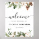 Watercolor Winter Green Pine Tree & White Flowers Poster